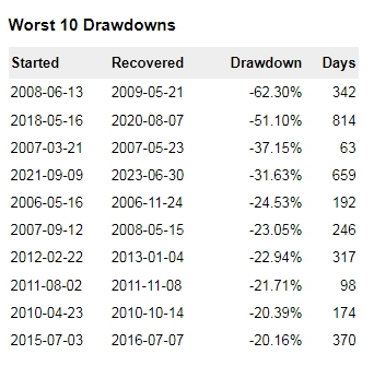 그런데 -62.3% ??? 이걸 견뎌내야 연복리수익 40%의 달콤함을 맛볼수있는 자격이 있는 것입니다.